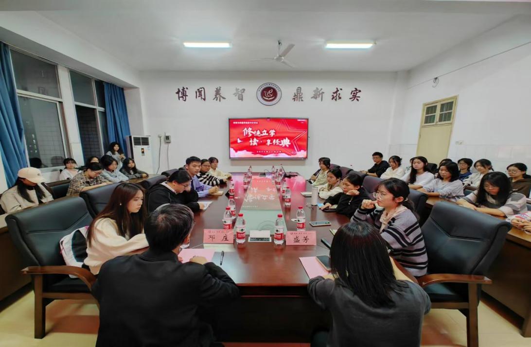 11月4日晚,我院“修德立学,读·享经典”读书分享大赛于文科楼A510室举行,邓庄副院长、盛芳教授出席评委,50余名读书爱好者现场交流学习。