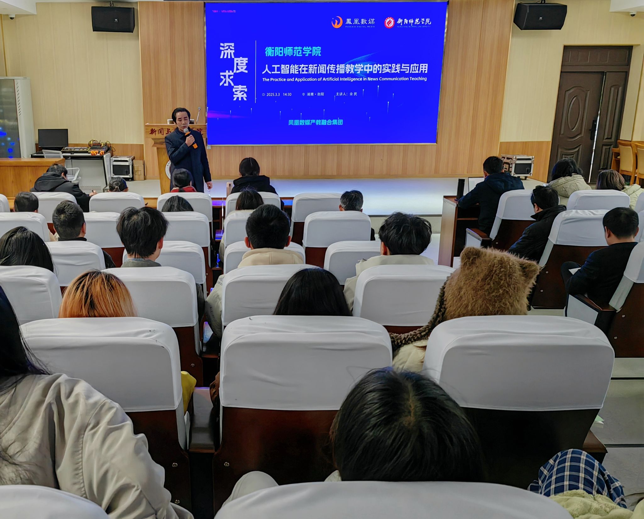 2025年3月3日下午,凤凰数媒产教集团资深项目负责人余民应邀在文A107举办了一场主题为“人工智能在新闻传播教学中的实践与应用”的专题讲座,太阳集团tyc151全体教师和2022级部分学生到场倾听。