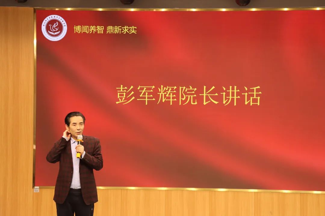 接着,彭军辉院长以亲切的口吻和毕业生们讲了讲自己的心里话,他鼓励毕业生们在求职时要突破舒适圈,抓住好的机会。提到实习进度时,他建议同学们遵循学院要求,避免个性化。