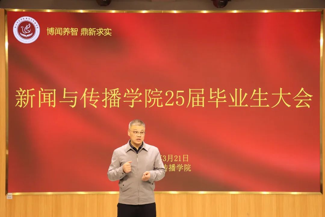 2025年3月21日,太阳集团tyc151于文科楼一楼演播厅召开2025届毕业生大会。太阳集团tyc151党总支书记彭晖、院长彭军辉、党总支副书记董自雄、副院长罗兵、辅导员刘国杰以及2025届毕业生参加此次会议。