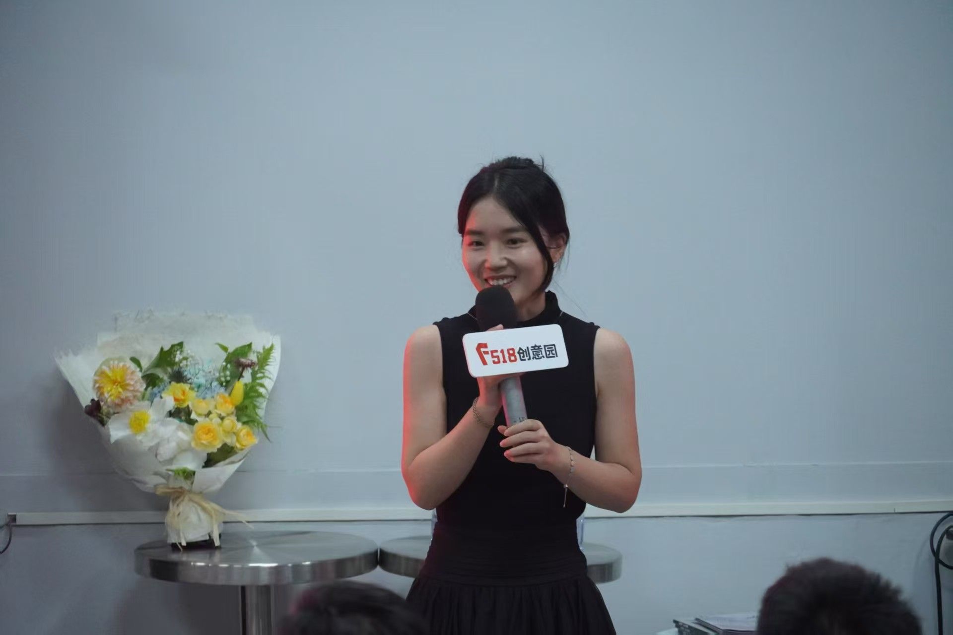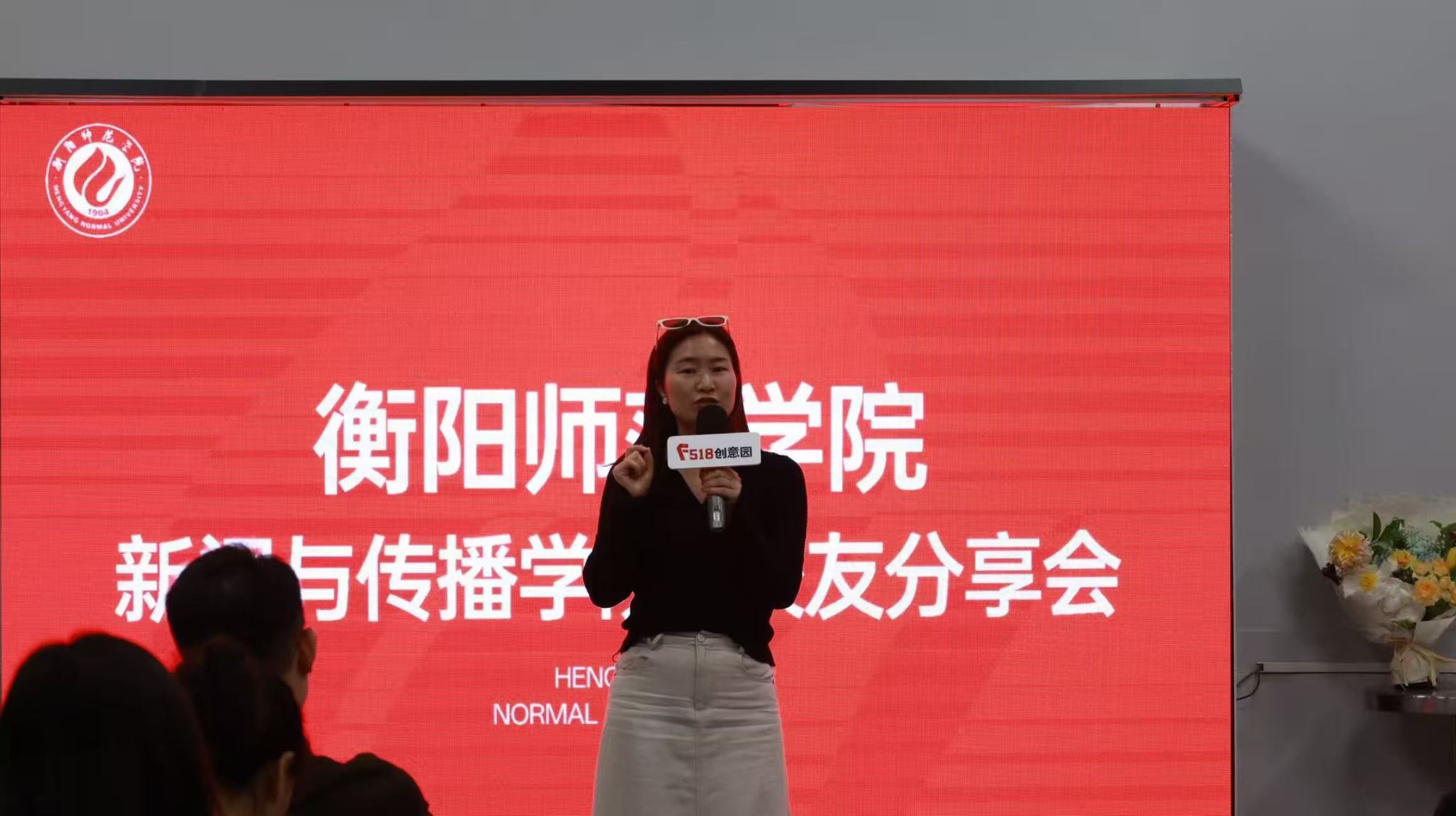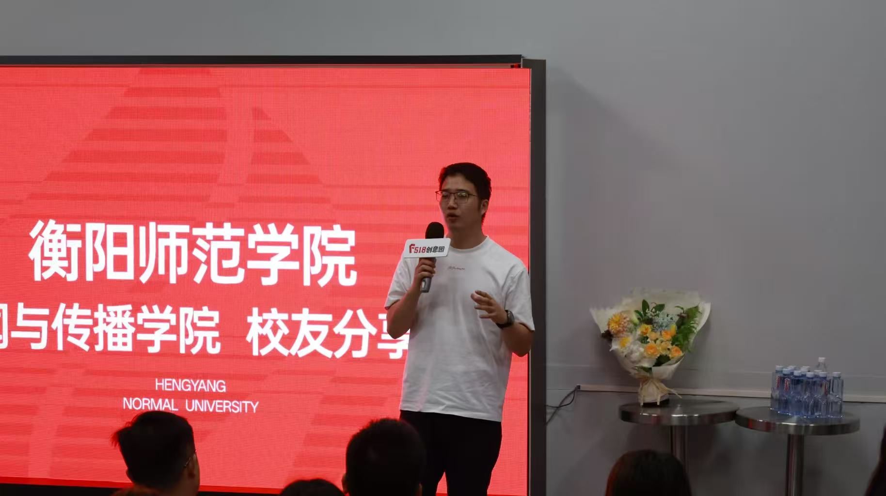活动开场,学姐学长们为两位老师送上献花,现场气氛瞬间升温。