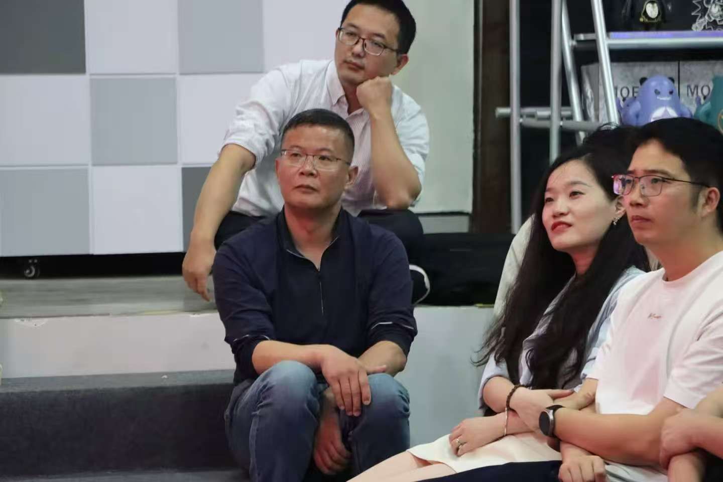 作为活动的主要召集人,王志永老师现场一直安静地坐在舞台旁的台阶上,认真地聆听。