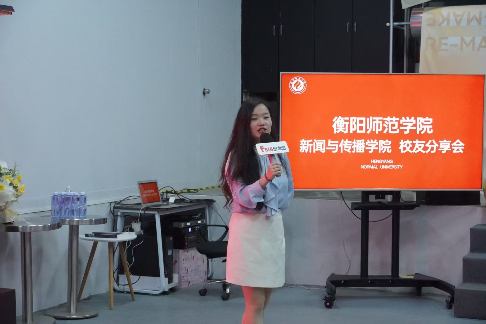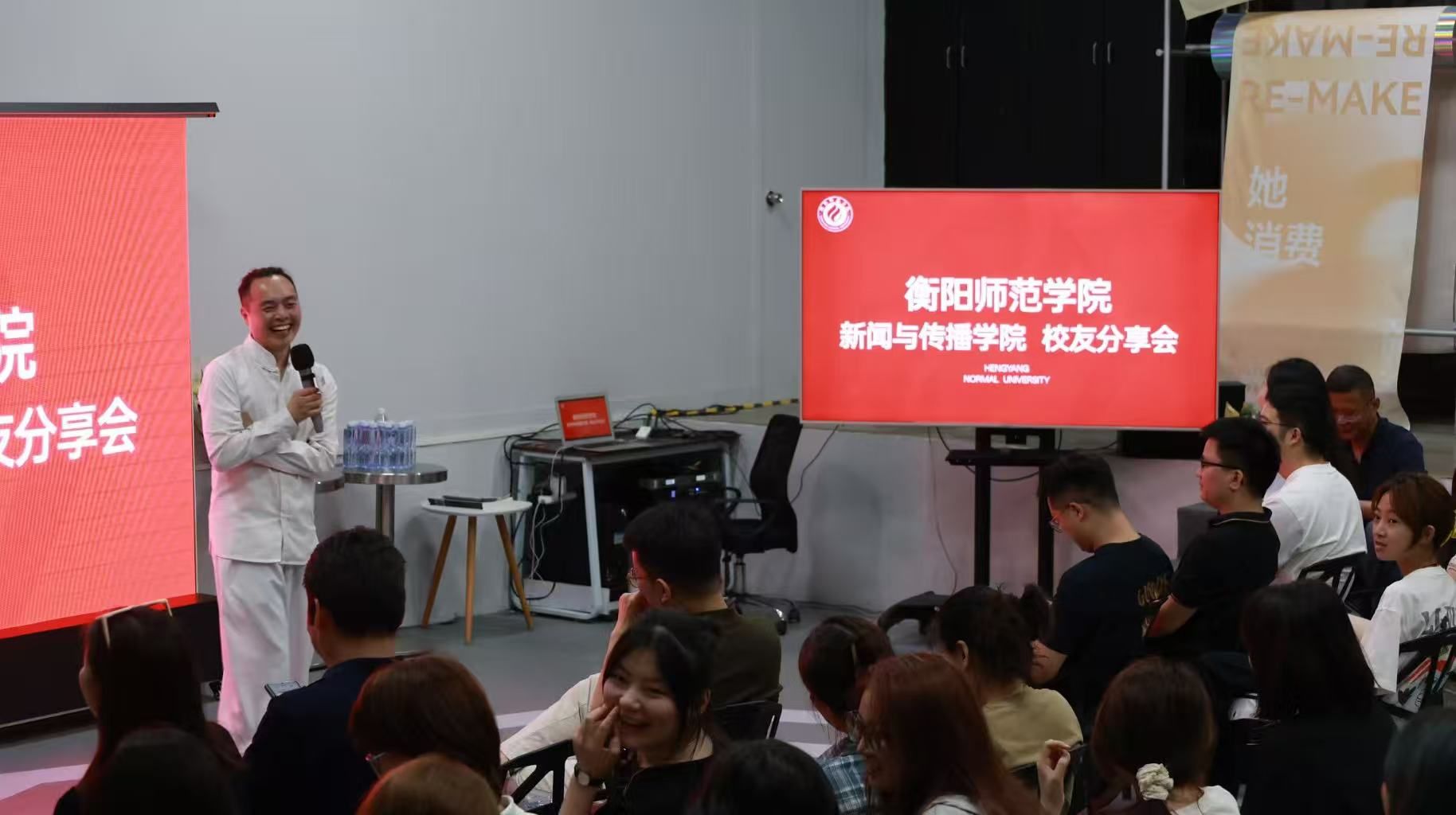 分享会由08级广播电视学专业陈艺玮学姐主持,她有着丰富的校园、商业主持经验,介绍了分享会的初衷后,以随机点名方式邀请到场校友依次上台分享自己的故事。在温馨、宽敞的大厅中,诸位校友娓娓道来,畅谈自己的职业经历、创业故事和人生感悟,现场充满了温暖与感动。