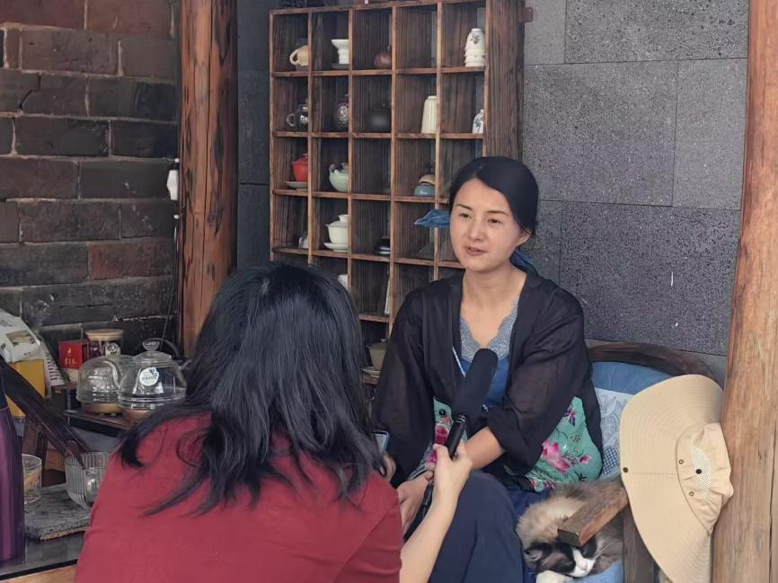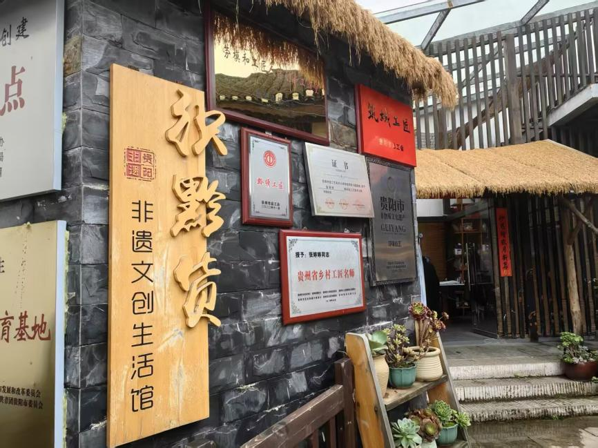 今天蓝天白云,清空万里。一大清早,我们小组就来到花溪区龙井村的贵州织黔货非遗文创体验馆,开启了一场扎染技艺的实地学习体验之旅。在这里,我们看到了扎染、蜡染、豆染等多种非遗技艺的全流程从选材到染色,从图案设计到成品制作,每一步都蕴含着匠人的智慧与心血。我们有幸采访了贵州省高级工艺美术师、非物质文化遗产技艺传承人张婷婷老师。采访结束后,小组成员亲手制作了扎染制品进行留念。通过这次见习,我们不仅用镜头记录下了贵州的美景与文化,更在亲身体验中感受到了非遗技艺的魅力与传承的重要意义。
