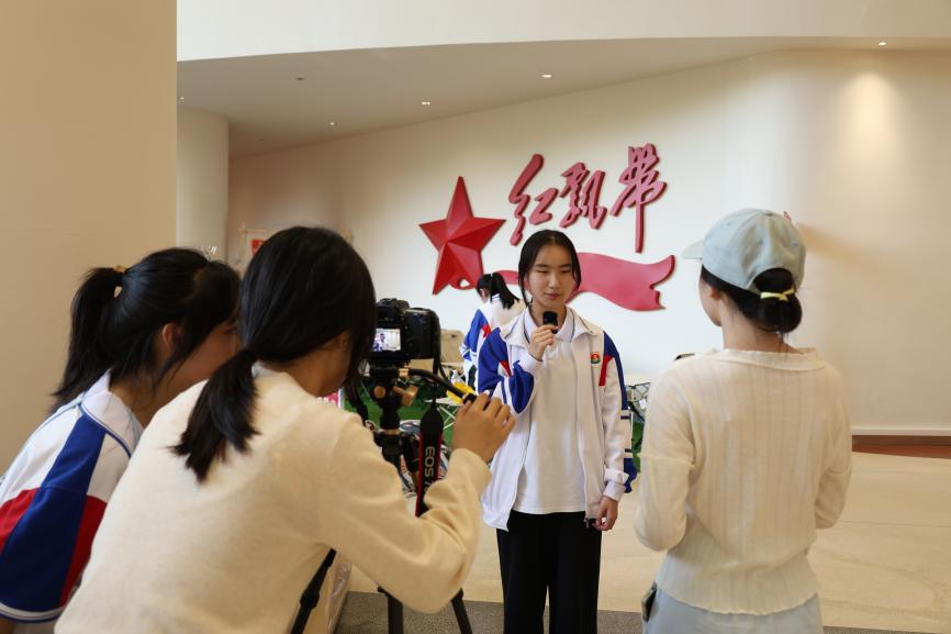 见习的第二天,我们小组怀着无比敬仰而又庄重的心情,踏入贵州红飘带·长征文化数字艺术馆。映入眼帘的是蜿蜒盘旋的似红色飘带的馆外墙,那跃动的线条与磅礴的气势,仿佛将二万五千里长征的壮阔征程徐徐铺展。拍摄过程中恰逢安顺市实验学校的中学生前来参观学习,他们青春洋溢的面孔上满是好奇与求知的渴望,我们随即对他们进行了简单的采访。今天的拍摄学习让我们以全新的视角重温了长征历史,深刻感悟到长征精神的伟大内涵,更让我们从这些充满朝气的中学生身上,看到了红色精神传承的希望。下午我们坐车前往黔灵山公园踩点,为明天的拍摄做准备。
