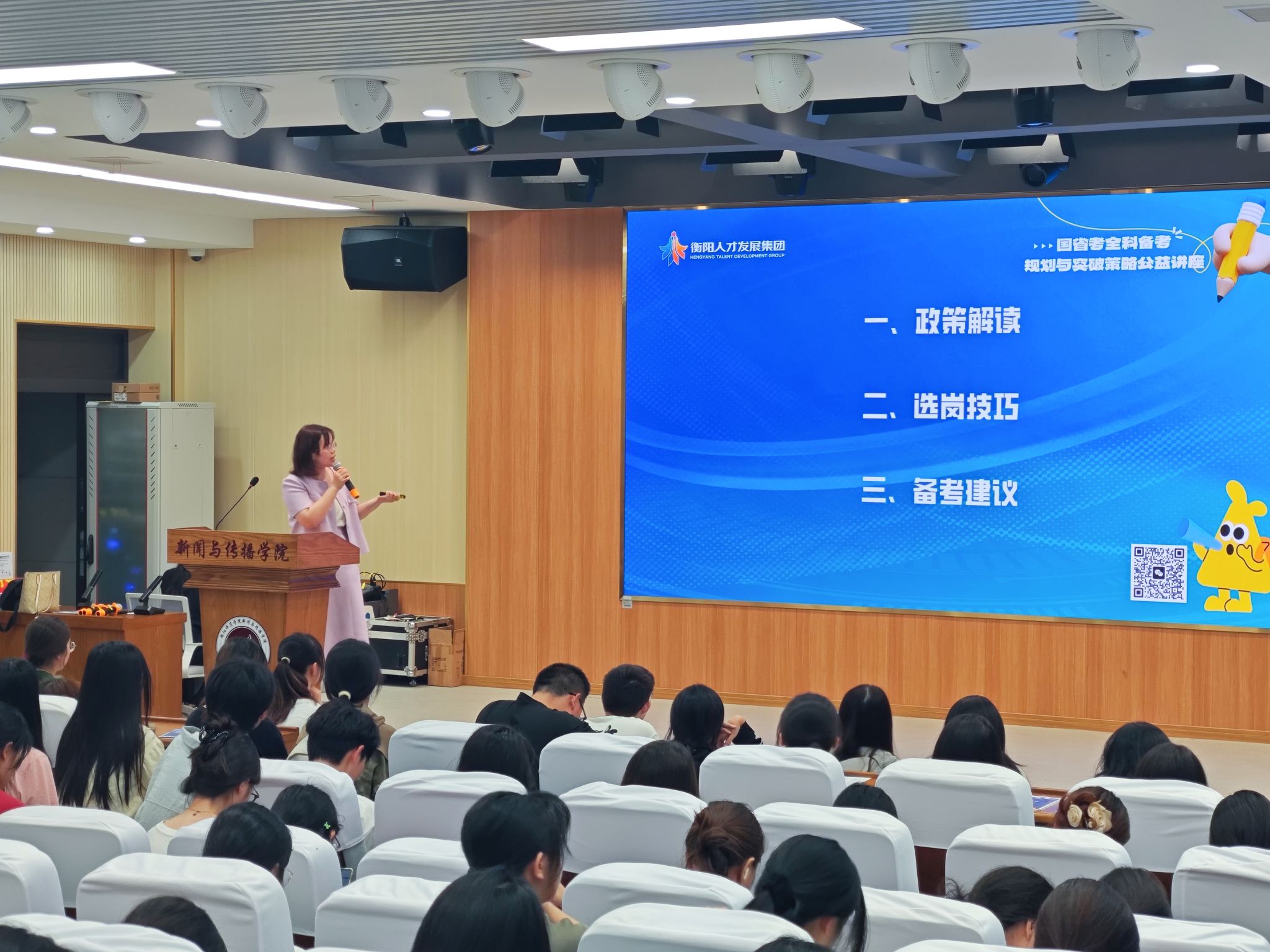 伊始,经验丰富的罗晴主任首先深度剖析了考公之路,帮助同学们明晰备考方向。接着,王老师则围绕2024 - 2025年考公政策变革展开,对国考、湖南省考及选调生考试等政策细则逐一解读,让大家精准掌握报考条件、招录趋势等关键信息。