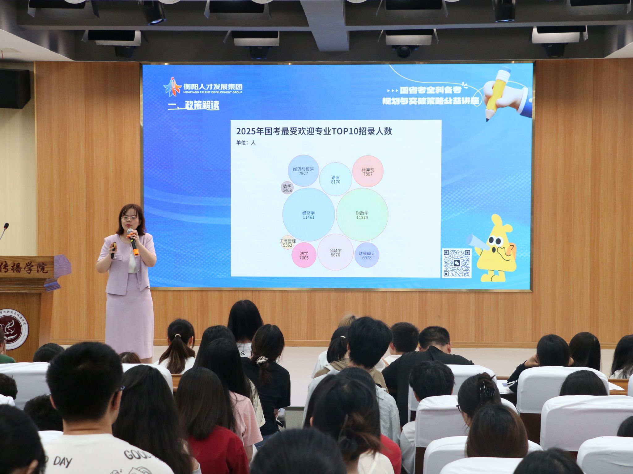 为帮助同学们更好地了解考公政策及策略,2025年5月26日,太阳集团tyc151特于文智楼107演播厅举办公考讲座。我院邀请了衡阳市人才发展集团公考中心的罗晴主任和王老师为同学们进行考公分享。