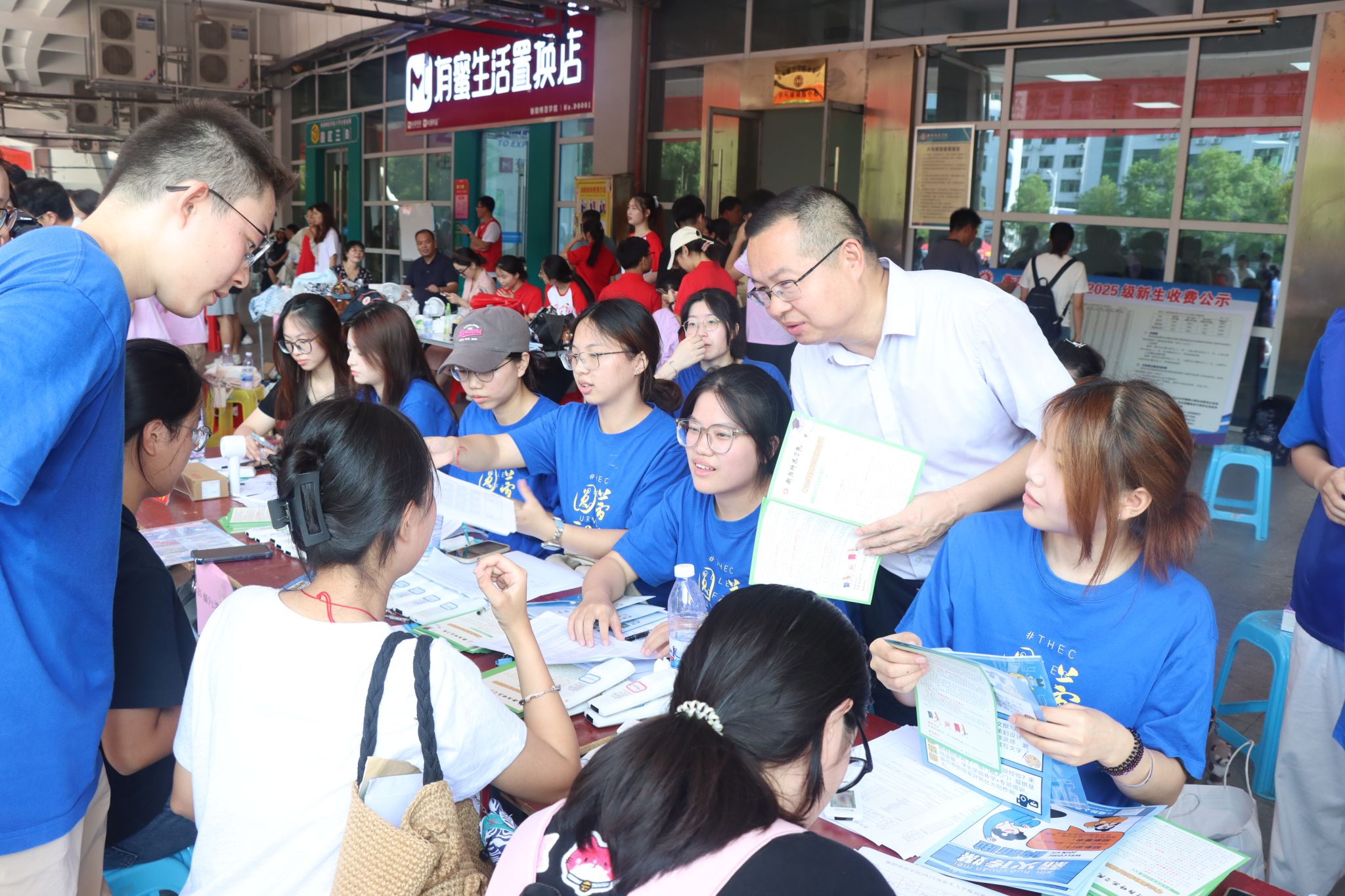 迎新期间,太阳集团tyc151党总支书记彭晖、党总支副书记董自雄、学工办副主任兼团委书记封伟为、辅导员刘国杰到达现场,详细了解新生报到情况,并对志愿者们的辛劳付出给予了高度赞扬,鼓励他们继续以高涨的热情迎接每一名新生。