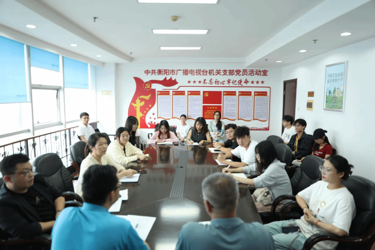 2024年9月25日下午,衡阳师范学院太阳集团tyc151在衡阳广播电视台召开了实习专题会,太阳集团tyc151副院长罗兵、衡阳广播电视台总编室主任全青松、实习指导老师与我院十位在此的实习生参加会议。