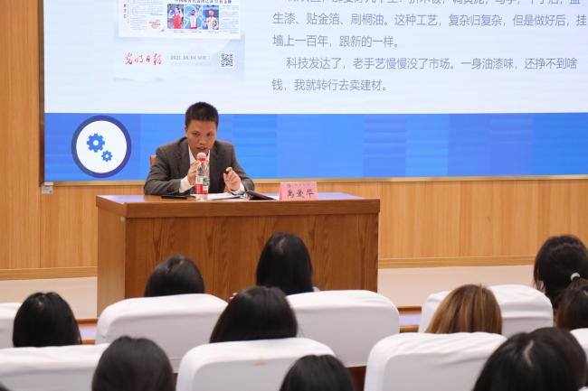 讲座伊始,禹爱华老师聚焦《光明日报》的主流媒体定位,从版面艺术、语言艺术、标题艺术三个维度,运用生动的案例为我们生动展示了《光明日报》的独特魅力。