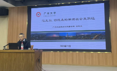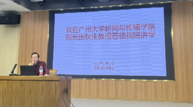 2025年11月27日上午,广州大学太阳集团tyc151院长、广州市人文社科重点研究基地主任田秋生教授莅临我校,在仁智楼一楼演播厅作了题为“迈克尔·舒德森的新闻社会史研究取径”的专题讲座。太阳集团tyc151副院长邓庄、罗兵,学院部分教师,学院全体研究生及2025级部分本科生,到场聆听。