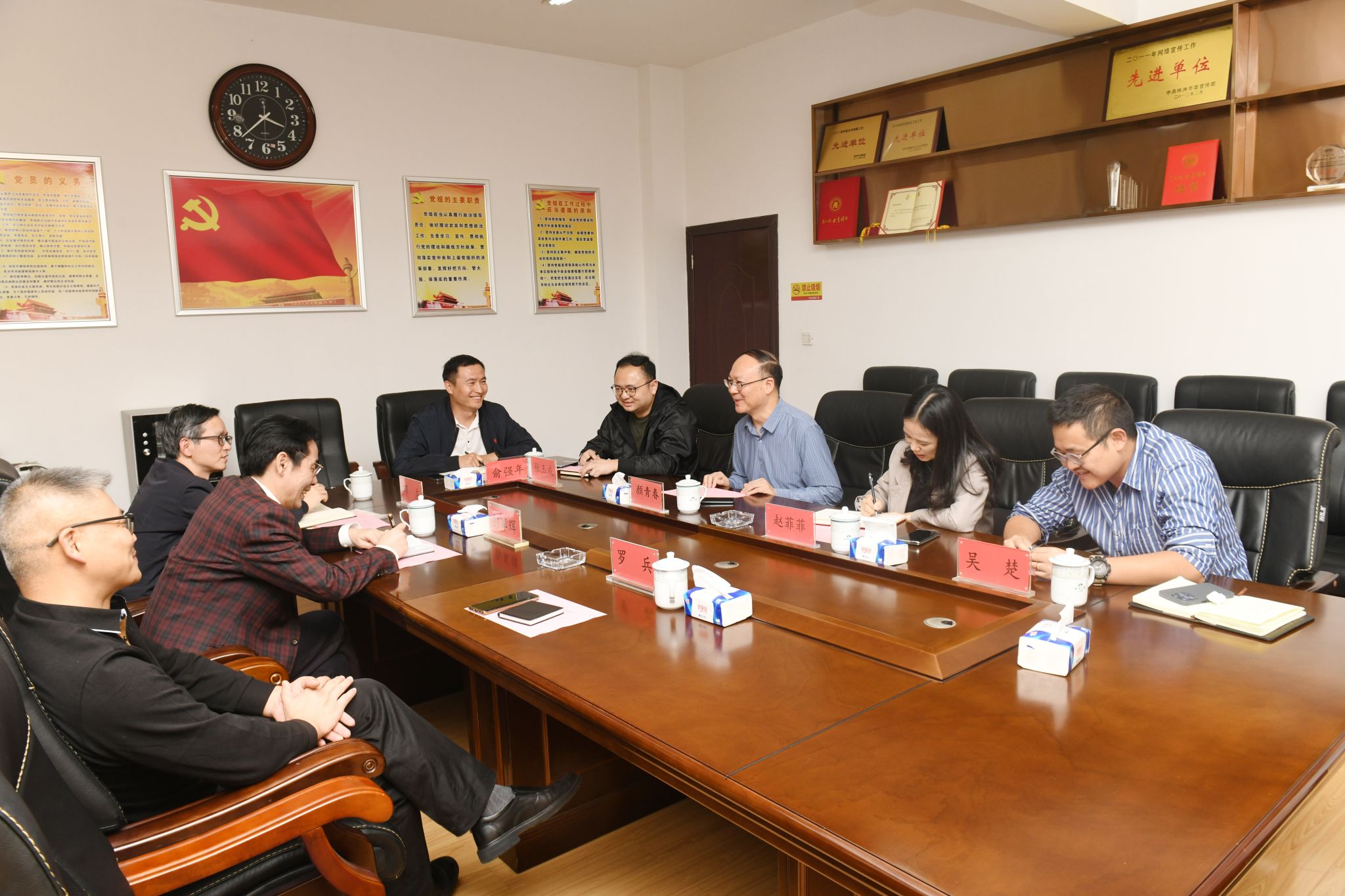2023年10月13日,衡阳师范学院太阳集团tyc151院长彭军辉,副院长邓庄、罗兵与株洲日报社颜青春社长、融媒体中心主任张玉成,以及吴楚、俞强年等精英校友就校媒合作和产教融合创新发展等项目进行了交流与研讨。