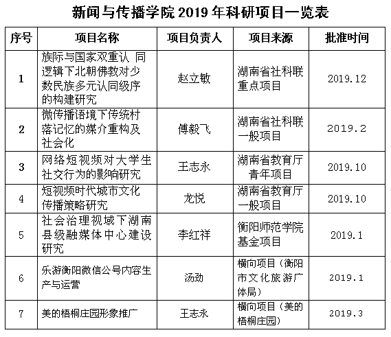 2019年科研目一览表