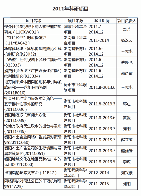 2011年科研项目