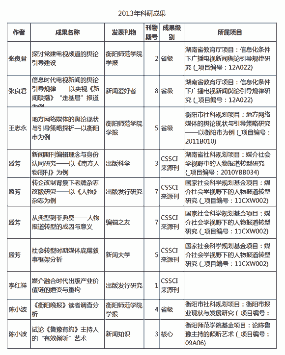 2013年科研成果