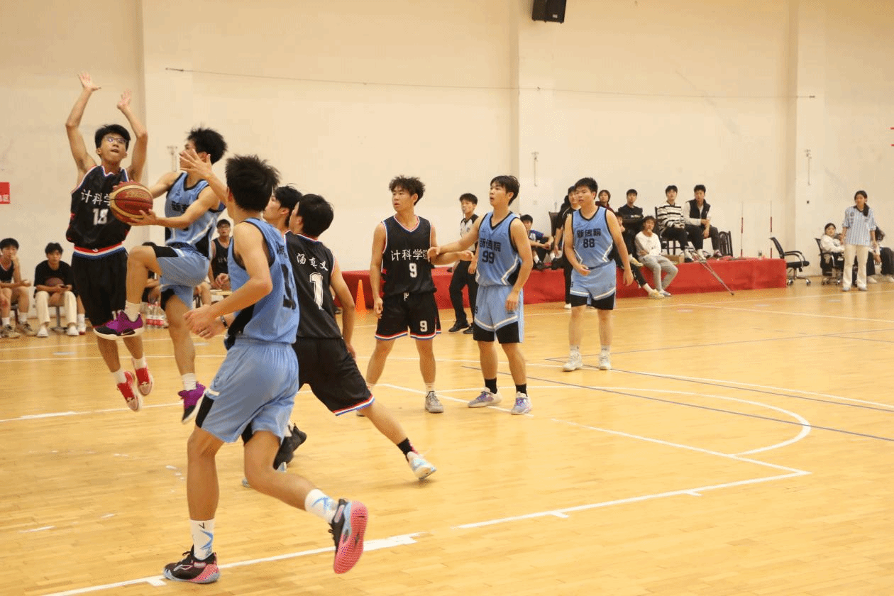 在比赛上半场进入白热化阶段,一个绝美的抛物线在35号谢磊手中抛发球、运球、传球,所有动作一气呵成!新传队员配合得行如流水!滑过了对方的防守,划过了炽热的青春!为新传拿下分数!