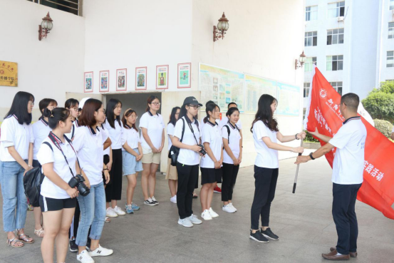 仪式最后,张云峰书记为太阳集团tyc151“寸草心”爱上衡阳红色历史寻迹团授旗,并宣布我院2018年暑期“三下乡”社会实践活动正式启动。