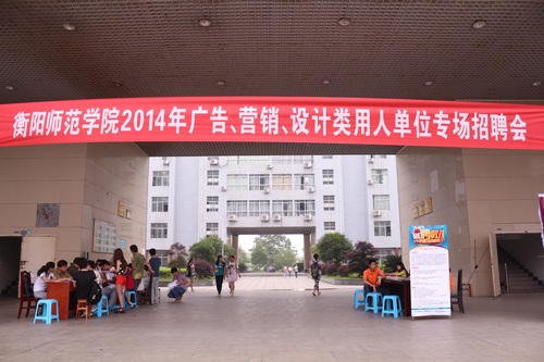 在2014届毕业生即将离校前夕,新闻与传播系通过积极筹划和多方努力,6月10日上午在文综楼下成功举办了衡阳师范学院2014年广告、营销、设计类人才专场招聘会。