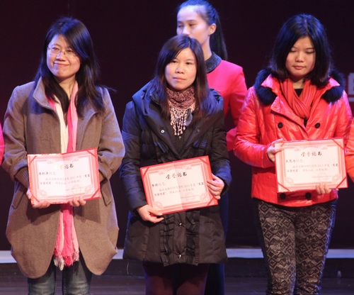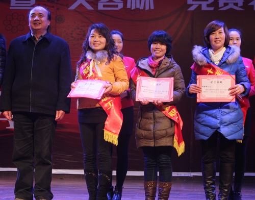 接着,晚会颁发了“芙蓉百岗明星”,获奖者分别是:机关三分工会申莹、人文社科系分工会宋建丽、后勤集团分工会郑静、资旅系分工会邓美容、教科系分工会吴思为、新闻系分工会李琼、化材系分工会唐斯萍、音乐系分工会陈瑾、物电系分工会刘灿、外语系分工会肖素英。