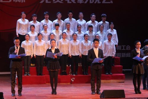 在整场晚会中还穿插着我系同学表演的诗歌朗诵、音乐剧,游戏互动环节活跃了晚会气氛。而由我系2013级广电等专业同学带来音乐剧《母亲的日记》更是将晚会气氛推到高潮,剧情中母亲对孩子的爱在孩子成长的不同阶段来表现,细腻的情感表达触动了在场的很多观众,甚至还有观众在悄悄抹眼泪。