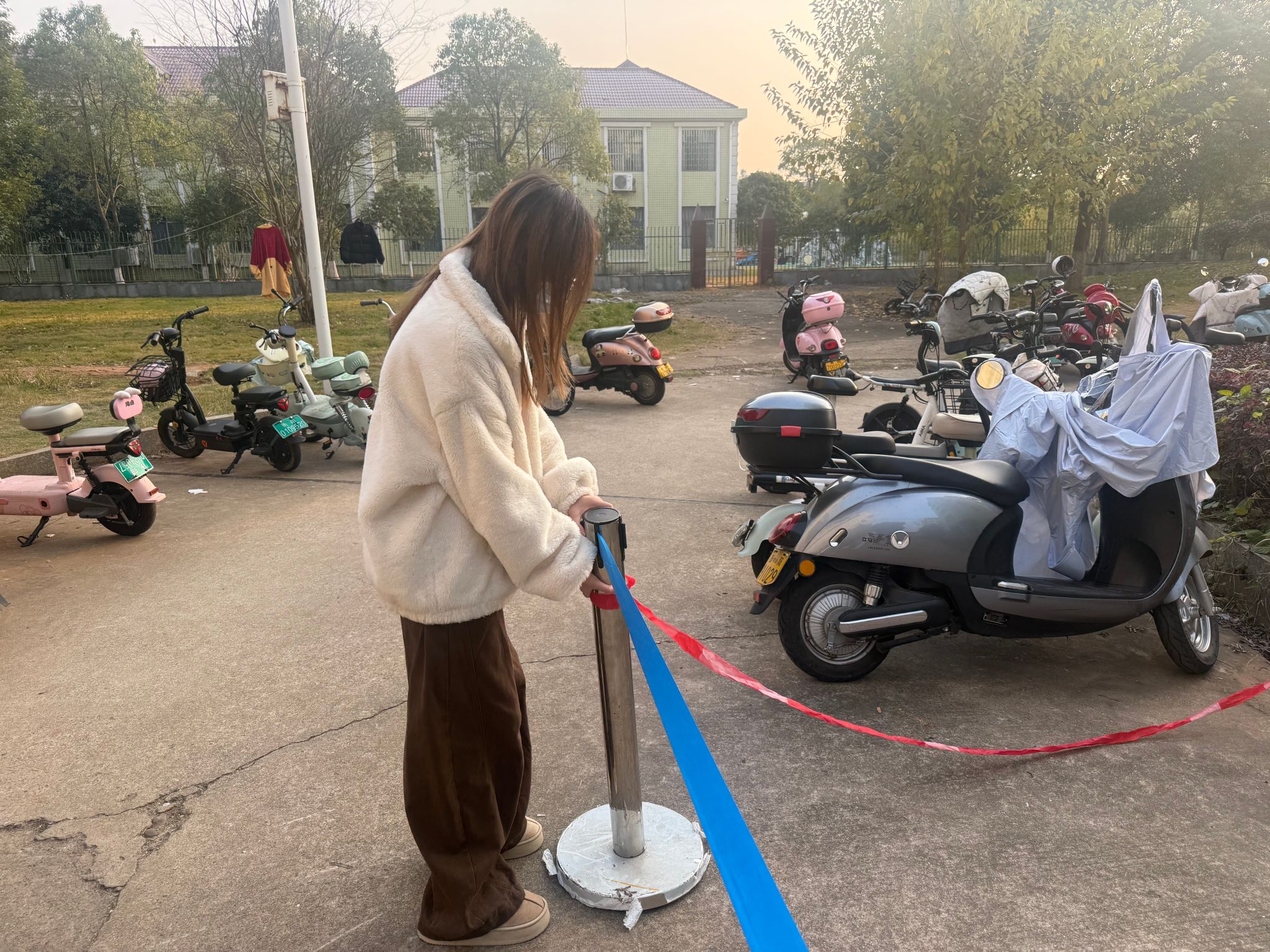 校园内的电瓶车停放是另一项重点内容。在宿舍区,部分学生为图方便,将电瓶车停放在楼栋门厅,堵塞了紧急疏散通道。此次党员活动,大家对乱停乱放的电瓶车加以排查,并及时进行车辆移动,并提醒大家以后一定要注意停车规范问题。