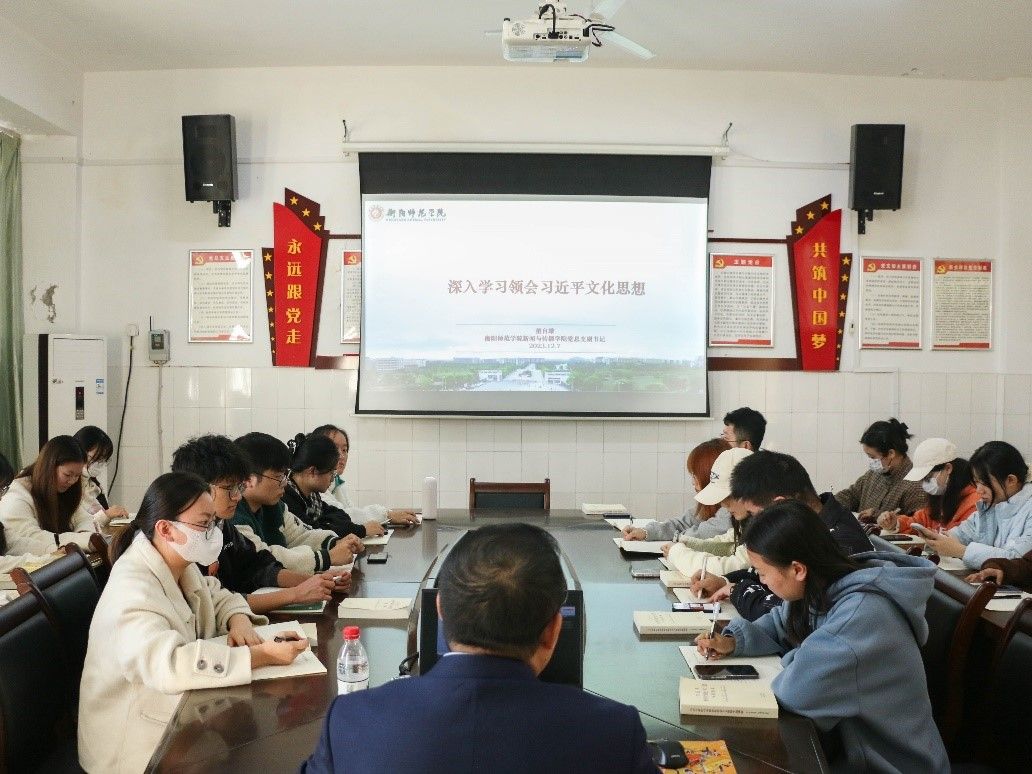 为深入学习习近平总书记对全国宣传思想文化工作作出的重要指示,全面领会习近平文化思想,12月7日下午,太阳集团tyc151在文A510开展以“深入学习领会习近平文化思想”为主题的党课活动,本次党课由学院党总支副书记董自雄主讲,全体学生党员到场学习。