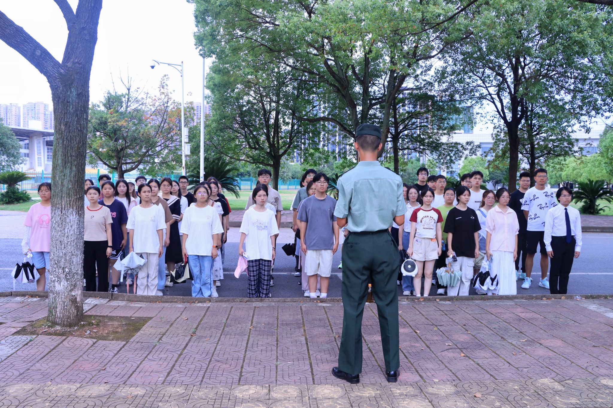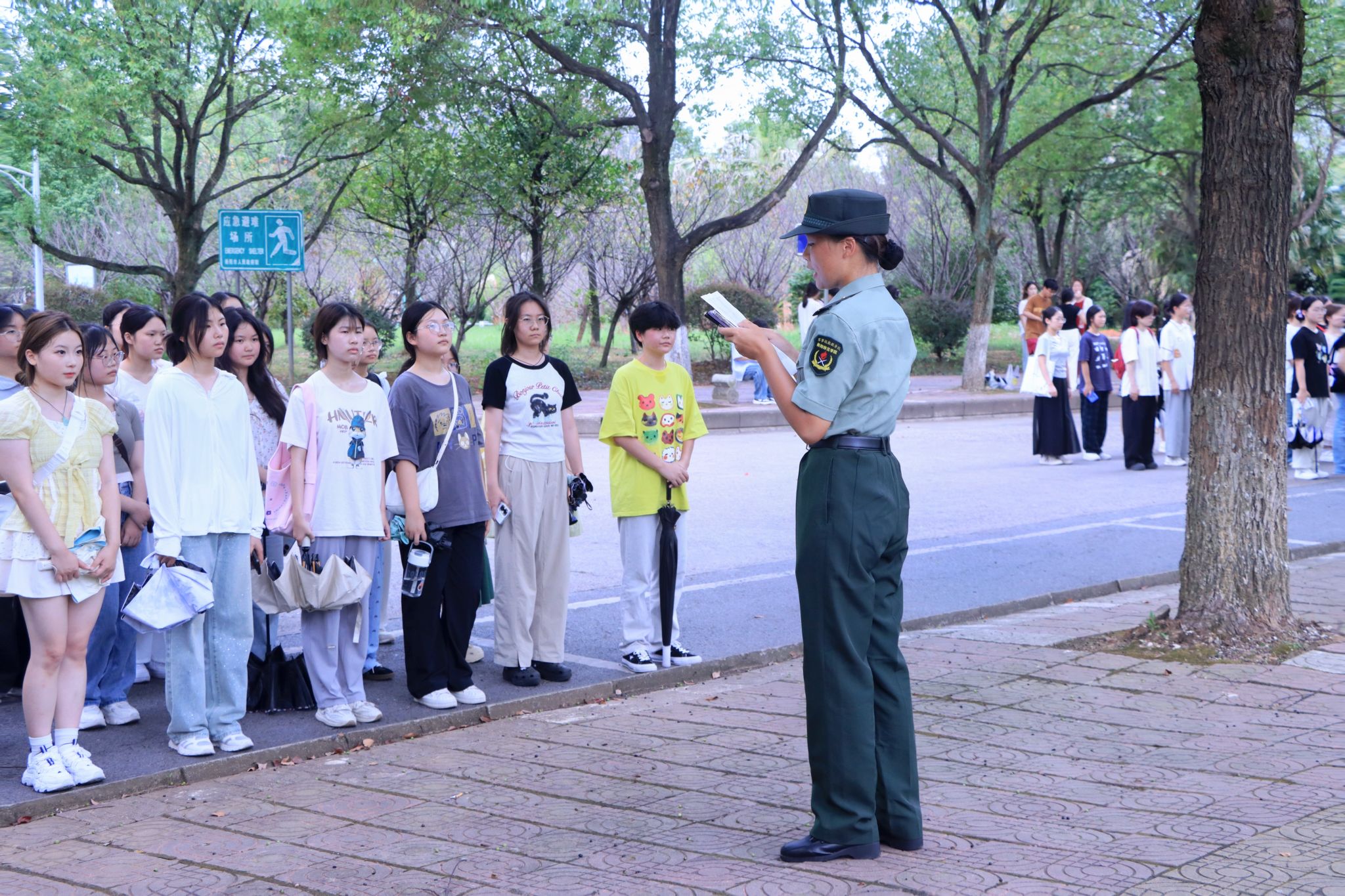 随后,军训教官带领新生前往训练场地,展开基本的队列知识学习。为新生们今后的军训生活筑牢了坚实根基,让他们能够以更加饱满的状态投入到后续的训练中,为开启精彩的军训之旅迈出坚实的第一步。